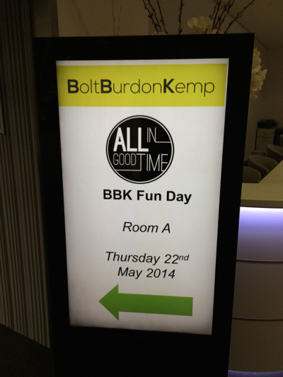 “BBK engaged the services of All in Good Time earlier this year for what turned out to be a really cracking day at the Islington Business Design Centre. In fact I can’t recall so much excellent feedback and fun being generated by any previous initiative. The event was well organised, structured in a time conscious manner and is still discussed months afterwards. I attended the end of the day concert and, as an aside, to see some of my partners facial expressions as they struggled (and succeeded!!) to get the right sound out of a Gibson Les Paul guitar was, alone, well worth the price of admission. It seems the event may well have spawned a BBK band.”